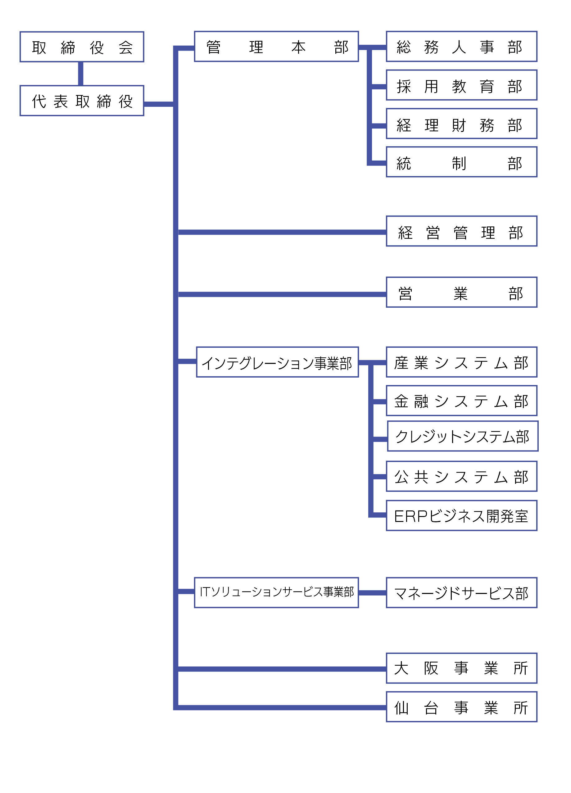 | 事業内容 | ソフトウェア開発:アプリケーション開発/パッケージ開発など システム基盤構築:サーバー構築/ネットワーク構築など システム運用保守:システムの運用/保守/監視など BIソリューション:コンサルティング/システム開発 |